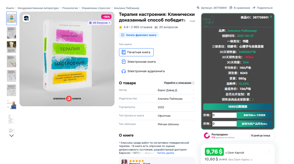 安装完成后,需要确保在安装了插件的浏览器上登录小助手网站,这样只要有权限就可以在ozon前台浏览商品的时候看到商品数据了