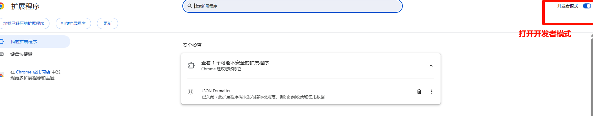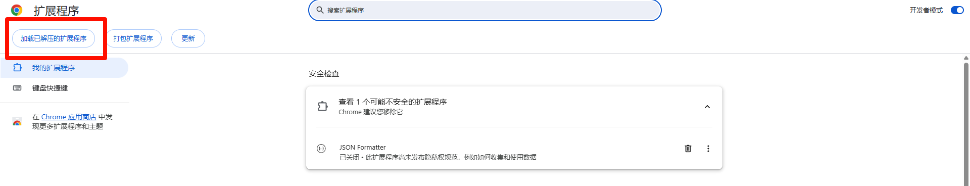 开启后点击“加载已解压的扩展程序”按钮,如下图红框所示